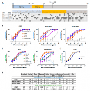 Making use of the trimeric (S) glycoprotein, SARS-CoV-2 (S) enters host cells. The (S) glycoproteins consists of two subunits, whereby one of them, the S1 subunit, binds to the angiotensin-converting enzyme 2 (ACE2) receptor present on the surface of host cells, whereas the S2 subunit fuses the membrane. Mutations are commonly found in the N-terminal domain (NTD) and the receptor-binding domain (RBD), and this allows for serum neutralising antibodies, as well as NTD- and RBD-directed monoclonal antibodies, to escape from infected or vaccinated patients.