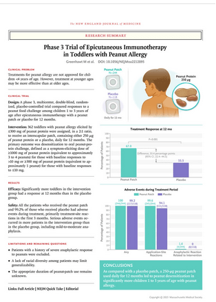Journal article: Greenhawt, M., et al., 2023. Phase 3 Trial of Epicutaneous Immunotherapy in Toddlers with Peanut Allergy. New England Journal of Medicine.