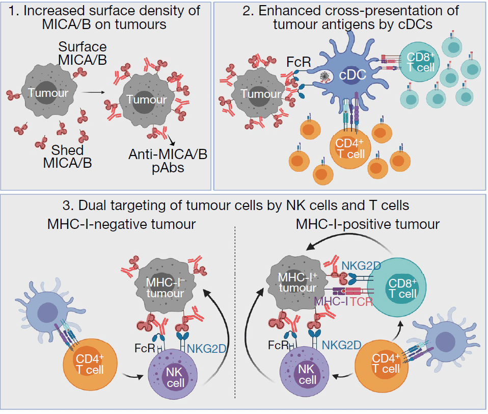 Proteolytic shedding of MICA/B from the surface of cancerous cells is how tumours are able to block the cytotoxic activity of natural killer (NK) cells and CD8+ T cells. This immune response can only be elicited as a result of the NKG2D receptor engaging with MICA/B bound to the surface of tumour cells.