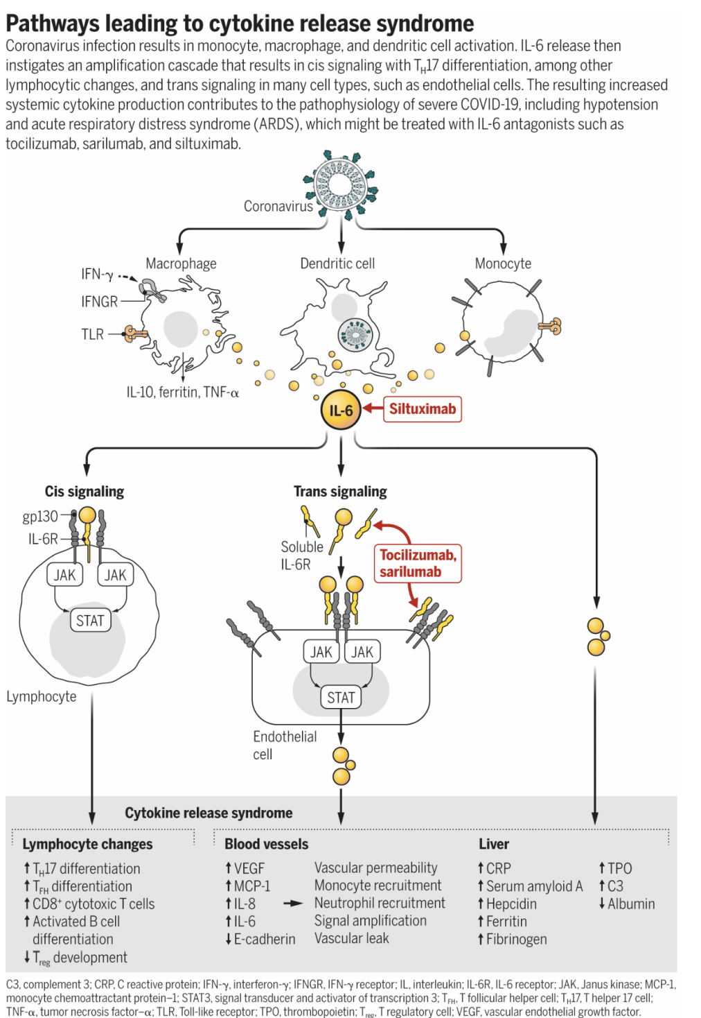 References: Moore & June, 2020. Cytokine release syndrome in severe COVID-19. Science