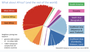 Artemisinin resistance was first reported in Western Cambodia in 2017 when treatment failure and requirement of a higher dose to clear the parasite was reported. Whole-genome sequencing of the resistant parasite identified artemisinin-resistant genes on locus 13. Further GWAS of parasites isolated in South-East Asia identified 9 significant loci and 20 different changes in locus protein (Kelch 13 mutation, Miotto et al., 2015). Artemisinin resistance thus far has not been reported in Africa, South America nor South Asia and Oceania (Pearson et al., 2019). However, there is still a risk of ART-resistant parasite dissemination to other global regions, as seen with chloroquine and sulphadoxine resistance. He then highlighted how mutant k13-proppeller polymorphism strongly correlates with parasite survival and clearance rate. Finally, he gave his final remarks on how the presence of these resistant genes can threaten the world’s malaria control and elimination efforts.