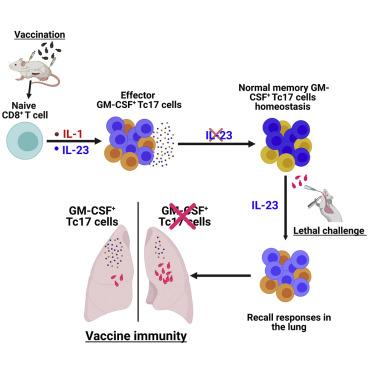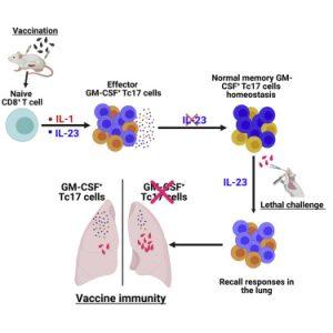 The Researchers were able to determine the importance of GM-CSF+ Tc17 cells for mediation of vaccine immunity. In addition, they were able to find that IL-1 and IL-23 are key role players in the function/production of GM-CSF+ Tc17 cells for vaccine immunity.