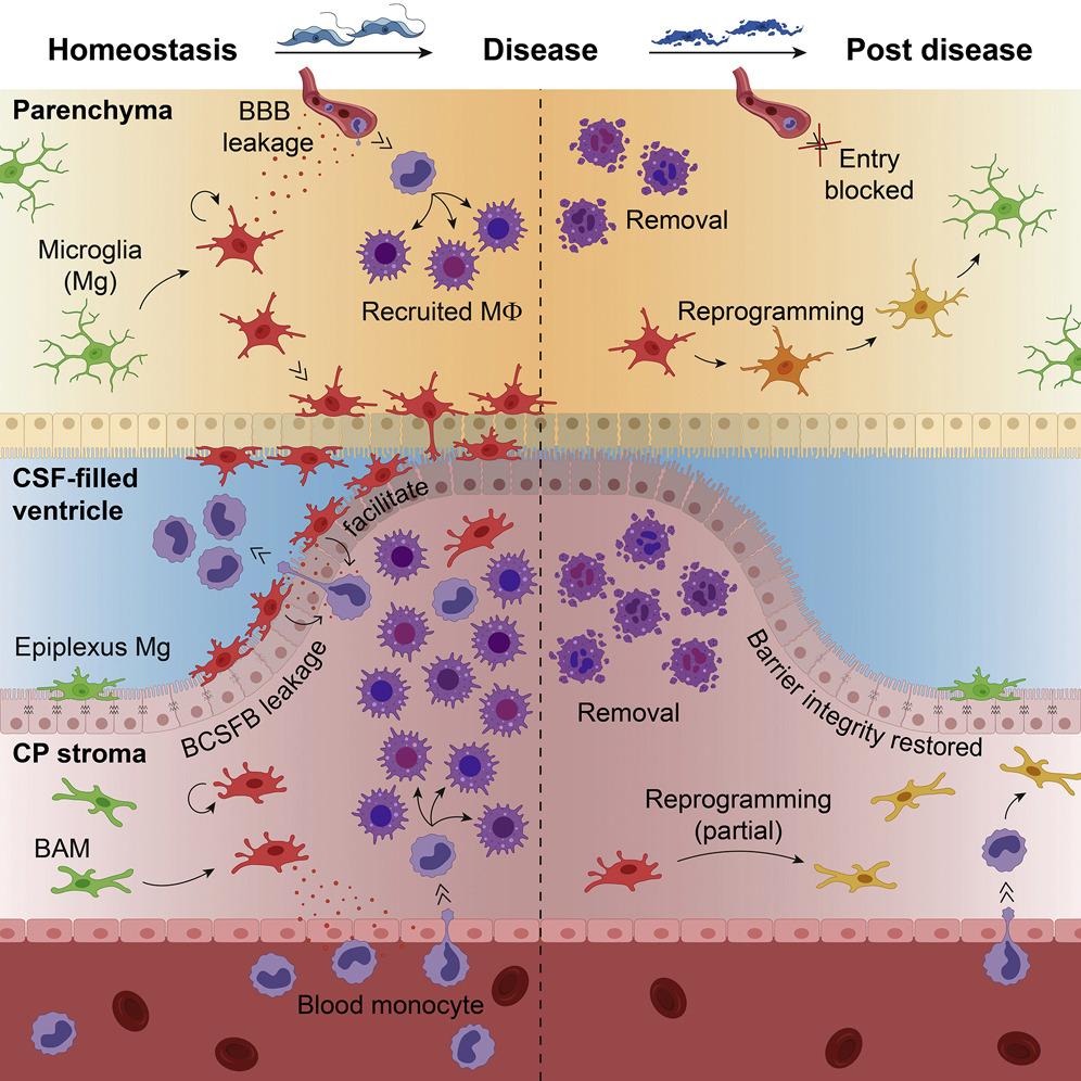 The team made us of Trypanosoma brucei, a dangerous pathogenic microorganism which targets the brain and studied its effects using a murine model. They were able to show how the parasite initially invades the meninges and the choroid plexus, and subsequently invades the fluid-filled cavities and the neuronal tissue. During this process they were able to map the immune system to see how the immune response works during infection.