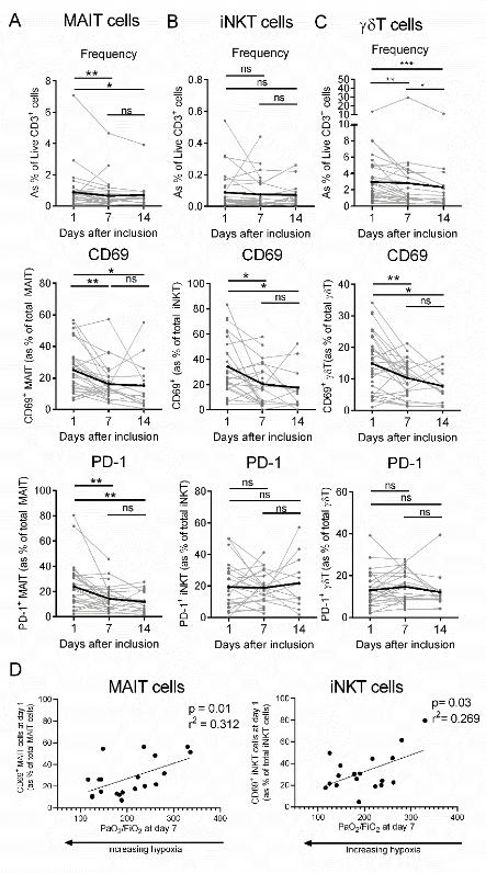 COVID-19 and SARS-CoV-2 immunological research has predominantly focused on the role of innate cells such as macrophages, NK, neutrophils, and adaptive cellular and humoral immunity in pathogenesis. Recent Pre-print by Jouan and colleagues analysed the biology of innate T cells: mucosal associated invariant T (MAIT) cells, γδ T and invariant natural killer (iNK) T cells in critically ill COVID-19 patients with varying co-morbidities (46.7% with Hypertension; 30% with Type 2 diabetes; 10% with cardiovascular disease).