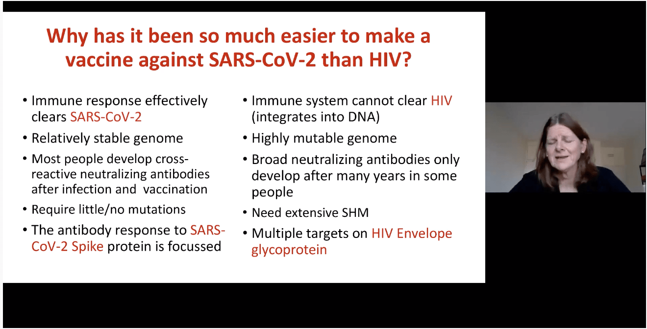 Prof Morris ended this section of her talk by highlighting how the Moderna vaccine was initially designed for HIV, and how the HIV field is investigating the potential for mRNA based HIV vaccines.