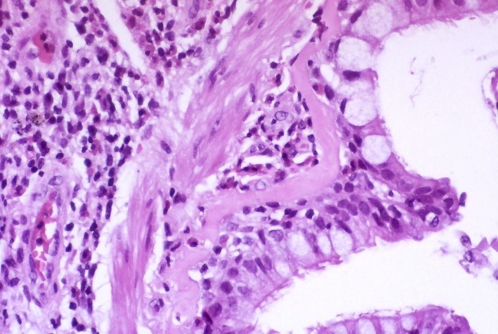 Asthma goblet cell metaplasia (Yale Rosen, Wikimedia Commons)