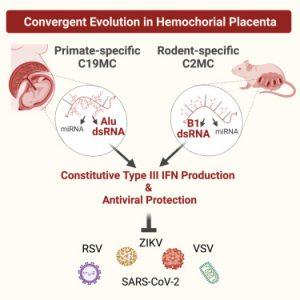 Journal article: Wickramage, I., et al, 2023. SINE RNA of the imprinted miRNA clusters mediates constitutive type III interferon expression and antiviral protection in hemochorial placentas. Cell Host & Microbe.