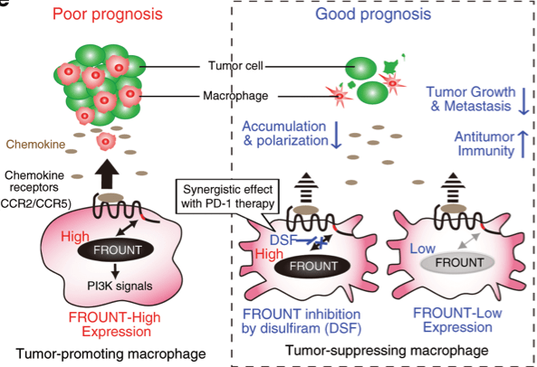 Terashima et al., 2020. Targeting FROUNT with Disulfiram Suppresses Macrophage Accumulation and its Tumor Promoting Properties. Nature Communications
