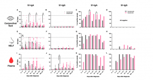 It has been reported that innate and acquired immune responses dictate the onset of mucosal immunity. When the SARS-CoV-2 antigen is detected in the nasal epithelia, it proceeds to the nasopharyngeal-associated lymphoid tissue (NALT). Similarly, if the antigen is present in conjunctival tissue, it proceeds through the conjunctiva-associated lymphoid tissue (CALT). It is here in these tissues that IgA-producing mucosal B-cells are produced. It has been reported that in patients infected with SARS-CoV-2, they possess a high level of serological IgA.