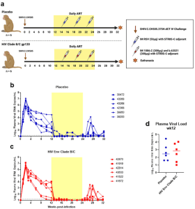 Nelson et al were able to show that Env vaccination in SHIV-infected, ART-suppressed RMs did enhance IgG responses against the vaccine immunogens b.63521 and 1086.c, as well as against the challenge virus Env, SHIV.C.CH505 when compared to the placebo group (figure 2).