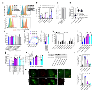 Figure 1: Human umbilical cord and peripheral blood-derived macrophages show heterogeneity in mycobacterial killing associated with oxidants and autophagy. Human cord blood (CBM) or healthy donor PBMC-derived MФs were cultured in the presence of either recombinant human IFN-γ (M1; 10 ng/mL) or human IL-4 (M2; 10 ng/mL) for 5 days and rested for 2 days. Untreated cells were M0-MФs. a, b Surface expression of receptors by CBM- derived naïve and Mycobacterium tuberculosis (Mtb; H37Rv)-infected M1- (CD80+/CD206−) and M2-MФs (CD80−/CD206+) on day 3 using flow cytometry and quantitation (*p < 0.01 t test); gating strategy shown Supplemental Fig. 1. c CBM-derived differentiated MФs were infected with Mtb for 4 h followed by microscopic counts of rfp-labeled MtbH37Rv to determine uptake verified using CFU counts. d PBMC-derived MФs from five healthy donors were differentiated using the indicated cytokines followed by infection with Mtb and CFU assay on day 4. Each point represents one donor (**p < 0.05; Kruskal–Wallis test). e PBMC-derived MФs were differentiated using GM-CSF (M1), IL-4 (M2a), IL-1β M2b), IL-10 (M2c) or left intreated (M0) followed by Mtb infection and CFU assay on day 4 (**p < 0.007). f CBM-derived, cytokine differentiated MФs were infected with Mtb followed by CFU assay over time (**p < 0.006; data from 3 experiments shown). g CBM-derived, differentiated MФs were infected with M. bovis BCG followed by CFU assay on day 4 (**p < 0.005). h CBM-derived and differentiated uninfected MФs or those infected with Mtb or BCG were incubated and at indicated time points, cultures were tested for nitrite using diaminofluorescein diacetate and fluorometry (*,**p < 0.005, t test). QPCR for mRNA of iNOS and protein are shown in Supplemental Fig. 3a and reactive oxygen species levels in Supplementary Fig. 3b. i MФs infected with Mtb as in panel h were incubated in NMMA (0.5 mM; N-monomethyl L-arginine) followed by CFU assay on day 3 (**p < 0.009). j CBM-derived, differentiated MФs infected with Mtb were incubated with 10 μM Rapamycin, 100 μM Metformin or their combination followed by CFU assay on day 3 (**p < 0.009). k CBM-derived, M1-, M2- and M0-MΦs were treated in the presence or absence of siRNA vs. beclin1 (ATG6) or its scrambled control followed by infection with Mtb and CFU counts on day 3 (*p < 0.007). Blot validation of Knockout using siRNA vs. beclin1 (ATG6) is shown in Fig. 3h. l MΦ lysates of panel k collected at 18 h were analyzed using western blots for the lipidation of microtubule-associated light chain 3 (LC3). Lipidation is indicated by LC3-II. m CBM-derived MΦs were infected with rfpMtbH37Rv and stained for an LC3 autophagy marker or LAMP1 lysosome marker using specific antibodies, Alex-Fluor485 conjugates, and imaged using confocal microscopy. Panels illustrate LC3 colocalization; LAMP1 stains using gfpMtbH37Rv is shown in Supplementary Fig. 3c. n Quantification of phagosomes colocalizing with LC3 are shown using an N90 Nikon fluorescence microscope (IF) and Metaview software (*p < 0.004, t test). For panels (b–c–e–f–g–h–i–b–k–n), p-values were calculated using a one-way ANOVA with Tukey’s post-hoc test; one of 2–3 similar experiments shown. CFU or IL-2 assays had triplicate wells plated per group or donor. Panels (d, g, i–k) horizontal dotted lines indicate day 0 CFU (4 h post-infection CFU). All Mtb CFU experiments used MOI of 1.