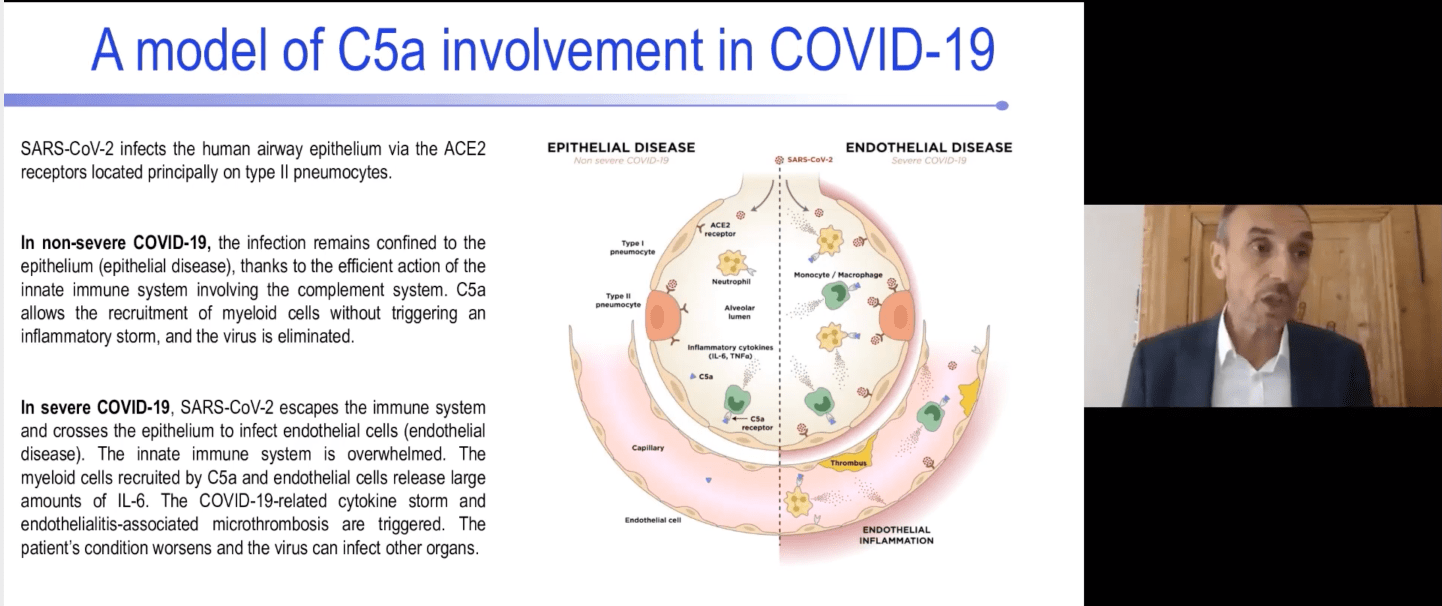 Last year Eric Vivier gave an IUIS webinar talk on Involvement of C5a-C5aR1 axis in COVID-19 pathology (read summary for more details). C5a plays a role in driving the pathogenesis of influenza-induced pneumonia and Acute respiratory distress syndrome (ARDS) by promoting infiltration of neutrophils and macrophages that get activated by a hyperinflammatory cytokine micro-environment. He then presented work that demonstrated that blocking of C5a activity using avdovalimab (anti-C5aR1 monoclonal antibody) reduces neutrophil migration and acute lung injury using a murine model. They are currently testing the utility of this immunotherapy against severe COVID-19 in clinical trials.