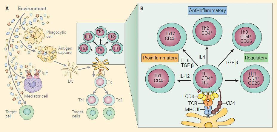 - Production of Th1, Th2, Th17, and two populations of Treg cells Th3 and TR1 (Figure 2), which have a variety of interactions with other cells in performing the following functions: