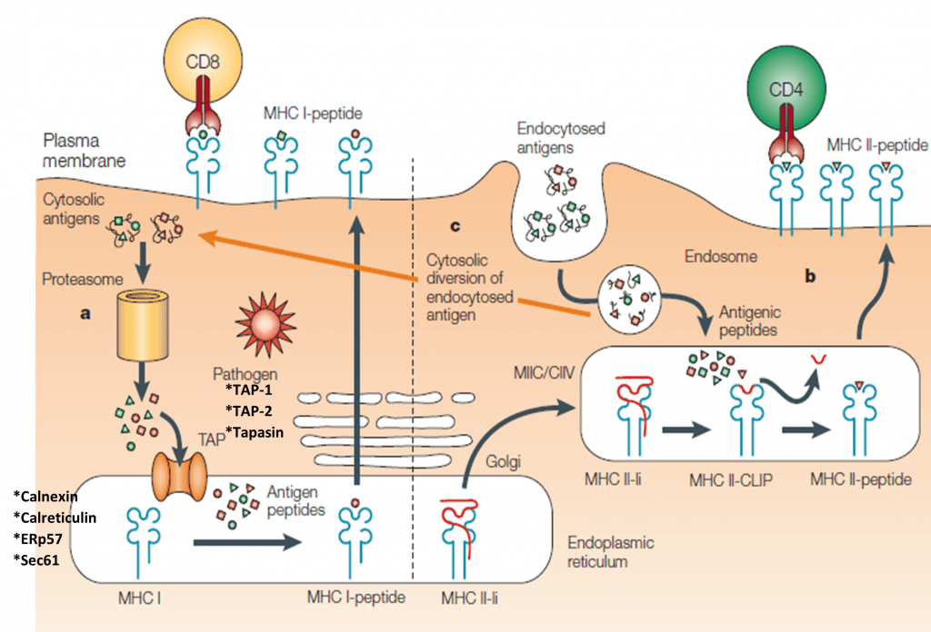 - Antigen loading as 8-10 amino acid long peptides onto HLA-ABC/MHC-I