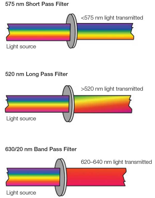 • Three main filter types are available: long pass filters, short pass filters, and band pass filters (Figure. 4).