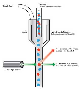 • A process called hydrodynamic focusing ensures the order into a stream of single cells.