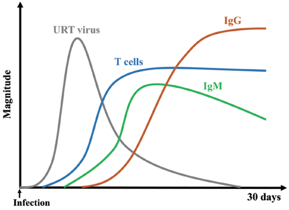 - Infection induces robust antibody and T cell responses, which in most cases likely controls viremia before COVID-19 pathogenesis progressors.