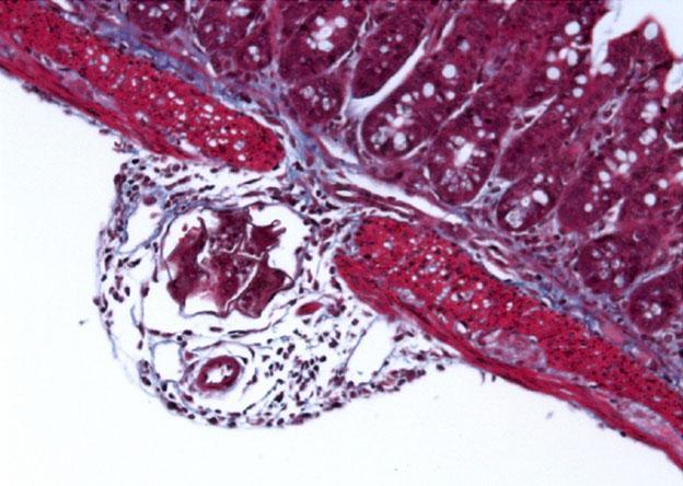 - After entering the vessels the eggs have to pass the barrier of the intestinal wall. This is achieved without a provoked inflammation, though not yet not fully understood studies suggest that egg derived proteases remodel the intestinal vasculature a process that helps the eggs pass the multi-layer barrier. (Turner, Narang et al. 2012)