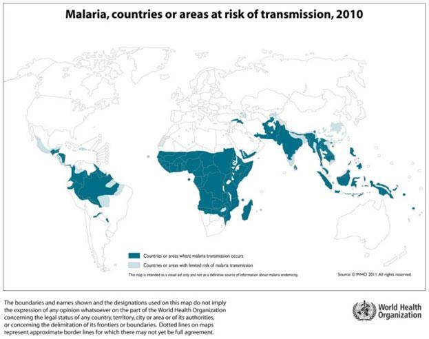 Malaria is a vector borne disease, caused by an intracellular parasite, the protozoan Plasmodium spp. It affects most tropical areas of the world (Figure 1), where mosquitos of the Anopheles genus are present. Young children and pregnant women are especially vulnerable to malaria infection, and most of the mortality occurs among children under 5 years of age.