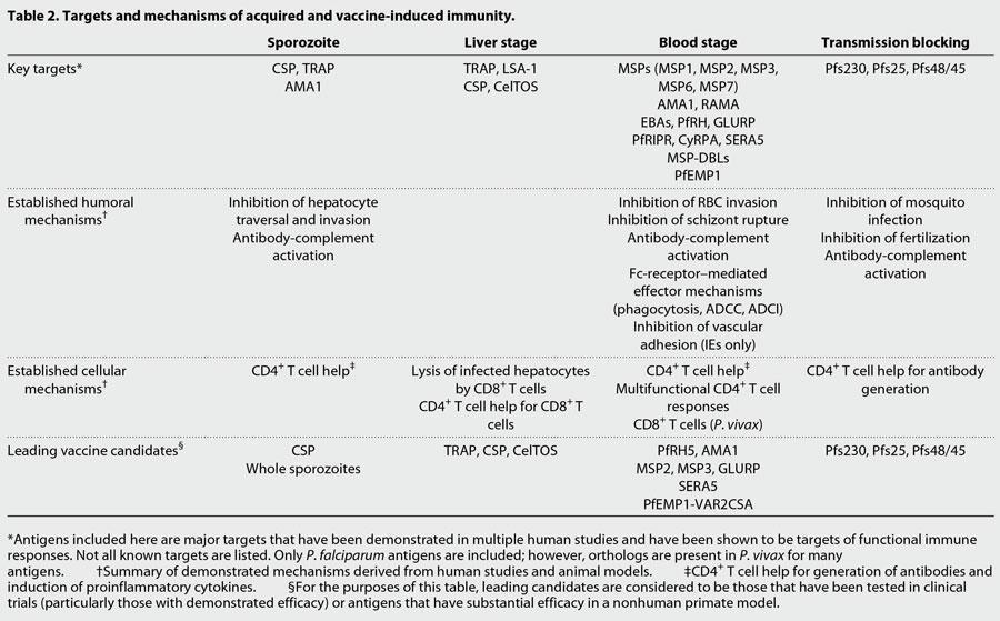 - Below are some of the presumed mechanisms of adaptive immunity to malaria that are also described in more detail in Figure 3 and summarized in Table 2.