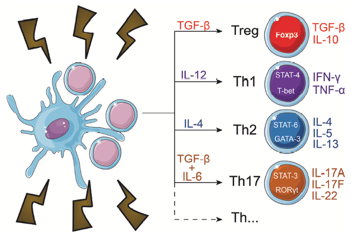 - Mature, activated DCs can secrete several cytokines and when they interact with CD4+ T-cells, they can influence their polarization into different T helper subtypes based on the particular cytokines present withing the microenvironment, as shown in Figure 1.