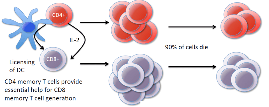 • Neither CD4 nor CD8 memory T cells require specific antigen to survive