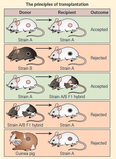 - A skin graft from the F1 hybrid to either parental strain, on the other hand, will be rejected since the recipient will recognize only one half of the genetic identity of the donated tissue as self and one half as foreign.