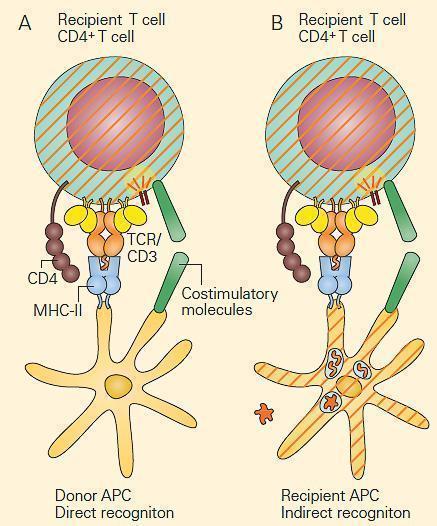 - This occurs without respect to any donor peptide that may be in the cleft of the donor MHC but requires both the presence of APCs in the graft as well as adequate lymphatic drainage to regional lymph nodes.