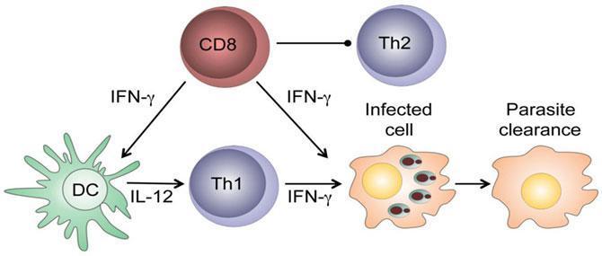 After healing of primary infection, IFN-γ-producing CD8+ T cells contribute to protection against reinfection, are able to transfer delayed type hypersensitivity to recipient mice and are essential in vaccine-induced immunity.