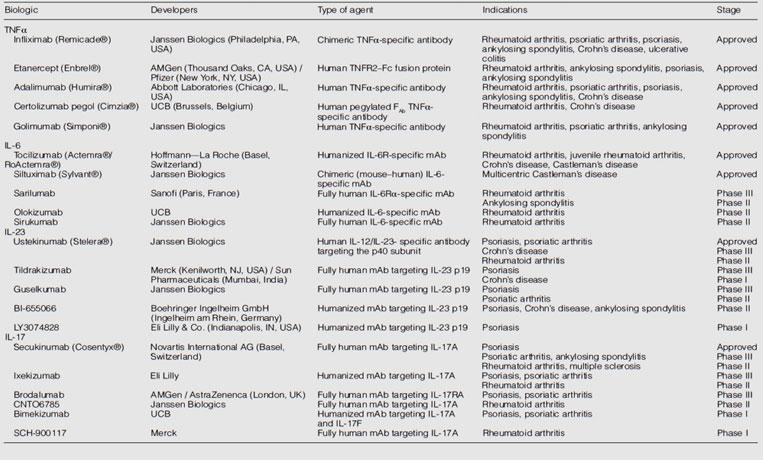 - In the past 15 years, a number of disease-modifying monoclonal antibodies and genetically engineered biologic agents targeting the immune system have been approved, notably for the treatment of rheumatoid arthritis, inflammatory bowel disease and psoriasis.
