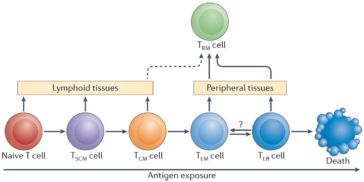 - Depending on the level of antigen exposure, activated naïve T cells can differentiate into various memory T-cells subsets (Figure 4).