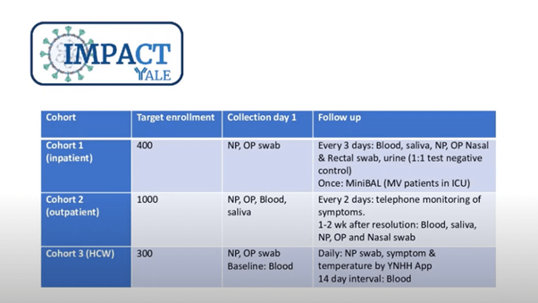 Prof. Iwasaki began her talk with a brief overview of some brilliant findings made by her and her group in addition to gaps they are looking to fill with further research. Firstly, they were able to establish and recruit from a biobank of patients meeting certain criteria for SARS-CoV-2 infection, collecting nasopharyngeal (NP) and oral swabs as well as blood and saliva (Figure 1).