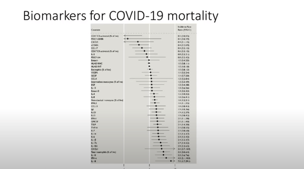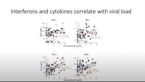 They also validated that the virus can evade specific immune response mechanisms such as the interferon response. Her team were able to characterise and identify biomarkers for COVID-19 mortality (Figure 4), additionally being able to distinguish patients who recover vs. patients who go on to develop worse disease. It was interesting to see how people with severe COVID had a delayed antibody production time course and had a higher production of anti-spike and anti-RBD antibodies. This allowing the grouping of patients from mild to severe disease phenotype.